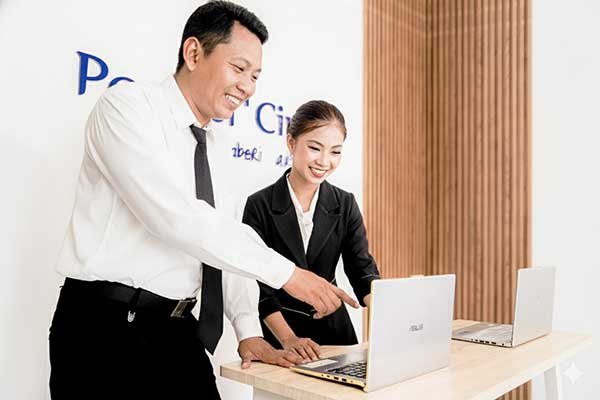 Resepsionis bertugas memberikan sambutan yang ramah, menerima dan mengarahkan tamu sesuai kebutuhan, serta membantu komunikasi dan administrasi untuk mendukung kelancaran operasional perusahaan.